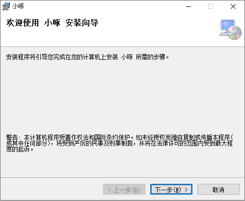 1、雙擊"小啄安裝包.msi”文件,開始安裝“小啄”程序,如下圖所示。