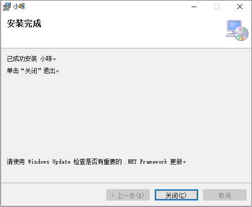 5、點(diǎn)擊“關(guān)閉”,“小啄”安裝完成,如下圖所示。