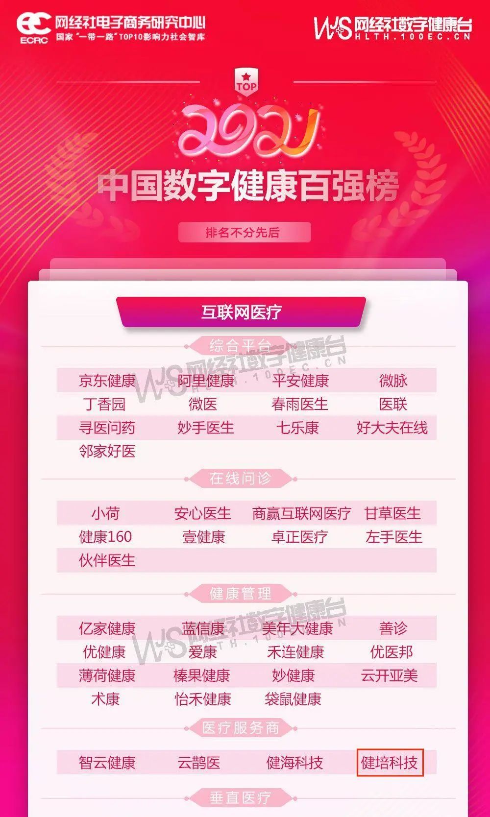 喜訊:健培科技榮登《2021年度中國(guó)數(shù)字健康 “百?gòu)?qiáng)榜”》