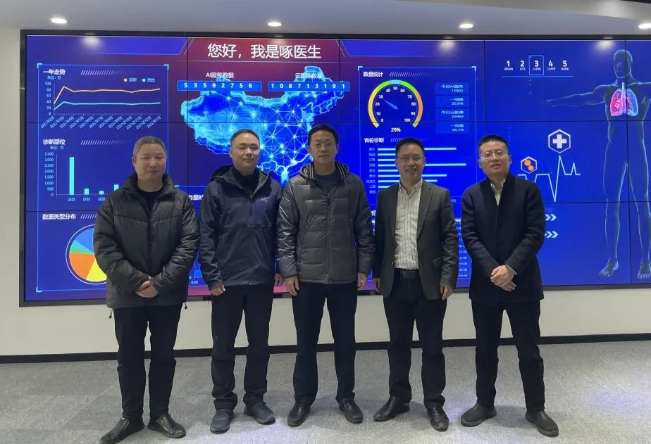 2月16日,杭州市投資促進(jìn)局副局長蔡儒杰、杭州市投資促進(jìn)服務(wù)中心副主任馬洪飛、蕭山區(qū)投資促進(jìn)局副局長高偉、長三角人工智能產(chǎn)業(yè)鏈聯(lián)盟秘書劉麒 、艾瑞咨詢產(chǎn)業(yè)研究院主任斯達(dá)威等領(lǐng)導(dǎo)一行蒞臨健培科技考察指導(dǎo)工作。調(diào)研新一代信息科技的最新應(yīng)用進(jìn)展,并深入了解人工智能技術(shù)在醫(yī)療領(lǐng)域的創(chuàng)新研究以及場景應(yīng)用。杭州灣信息港副總經(jīng)理聞春虹等陪同調(diào)研指導(dǎo)工作。