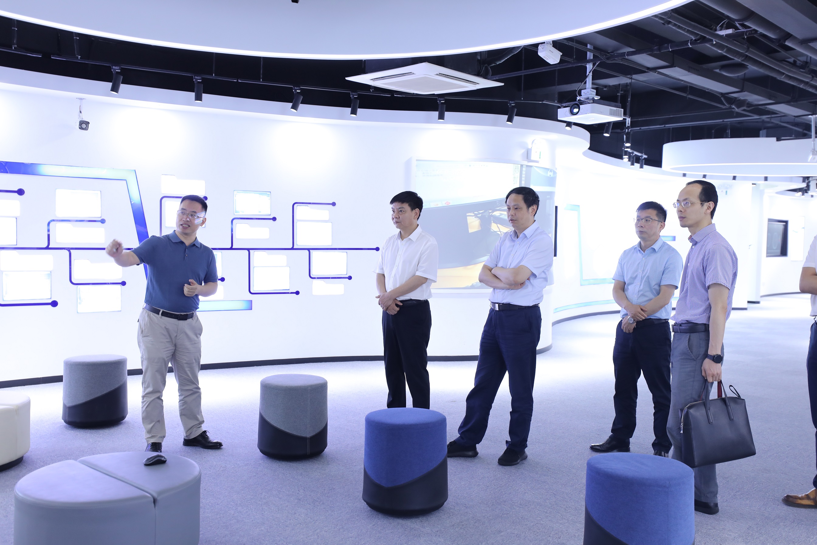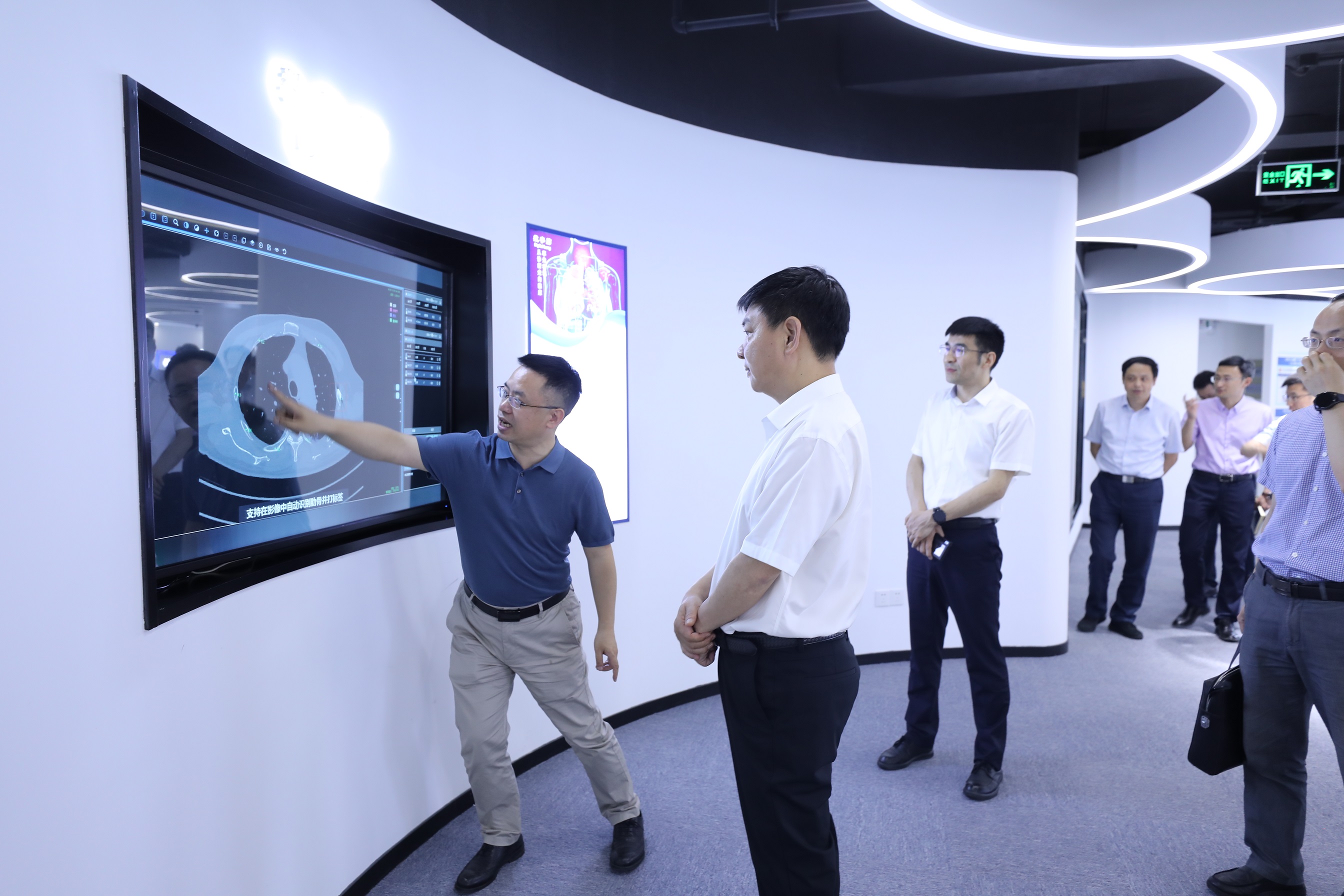 健培科技董事長程國華熱情詳細的介紹了公司發(fā)展歷程、人才隊伍建設、產(chǎn)學研用發(fā)展方向以及重點應用場景等情況。健培科技一直不斷深化建立高水準的創(chuàng)新人才培養(yǎng)體系,與高校合作建設科研工作站,加強產(chǎn)學研一體化就是其中的重要模式,為企業(yè)實現(xiàn)持續(xù)的創(chuàng)新發(fā)展提供重要保障。目前,公司依托浙江省健培科技醫(yī)學人工智能高新技術企業(yè)研究開發(fā)中心,以及浙江省智慧醫(yī)療創(chuàng)新中心,最大程度的讓人才可以發(fā)揮最大潛能投入到智慧醫(yī)療的研發(fā)建設當中來。在參觀調(diào)研過程中,張主任肯定了健培科技在產(chǎn)業(yè)化落地取得的成績,并鼓勵繼續(xù)發(fā)揮多學科融合人才的培育優(yōu)勢,大力投入研發(fā)和產(chǎn)品創(chuàng)新,打造高水準的創(chuàng)新人才培養(yǎng)體系,從而助推數(shù)字醫(yī)療產(chǎn)業(yè)的快速發(fā)展。