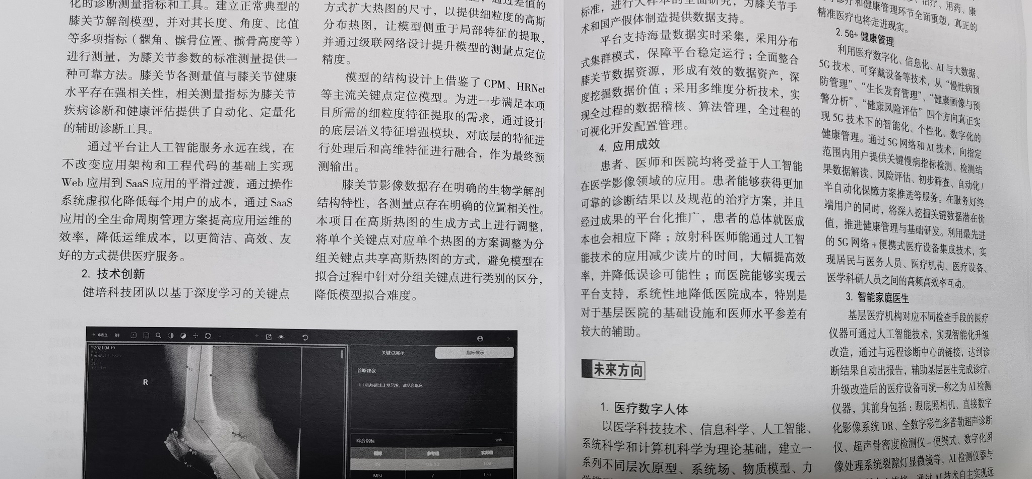 健培在AI+醫(yī)療領(lǐng)域的《中國(guó)正常成人膝關(guān)節(jié)影像值數(shù)據(jù)庫(kù)平臺(tái)構(gòu)建及AI相關(guān)研究》被列入浙江省人工智能典型應(yīng)用場(chǎng)景。 健培中國(guó)正常成人膝關(guān)節(jié)影像值數(shù)據(jù)庫(kù)平臺(tái),由數(shù)據(jù)中臺(tái)、AI應(yīng)用框架和基于大數(shù)據(jù)的智慧應(yīng)用三大部分組成。健培應(yīng)用加速器+人工智能技術(shù)打造中國(guó)正常成人膝關(guān)節(jié)影像值數(shù)據(jù)庫(kù),建立高效、精準(zhǔn)的自動(dòng)檢測(cè)平臺(tái)。以基于深度學(xué)習(xí)的關(guān)鍵點(diǎn)定位技術(shù)為基礎(chǔ),結(jié)合膝關(guān)節(jié)關(guān)鍵點(diǎn)分布特性和生物學(xué)解剖結(jié)構(gòu)進(jìn)行創(chuàng)新設(shè)計(jì)?;颊摺⑨t(yī)師和醫(yī)院均將受益于人工智能在醫(yī)學(xué)大數(shù)據(jù)領(lǐng)域的應(yīng)用。
