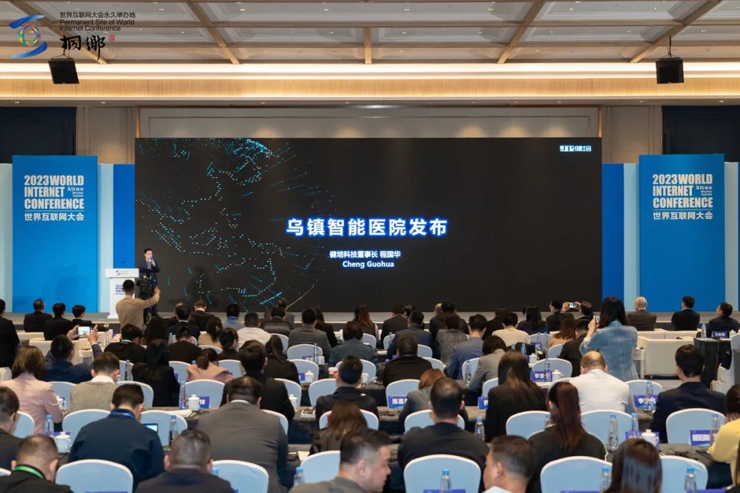 烏鎮(zhèn)AI智能醫(yī)養(yǎng)中心負(fù)責(zé)人,健培科技董事長(zhǎng)程國(guó)華宣布烏鎮(zhèn)智能醫(yī)院正式發(fā)布,并在會(huì)上作主題報(bào)告。