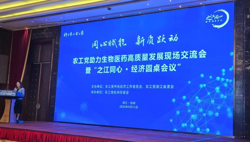 9月11日,由農(nóng)工黨中央經(jīng)濟(jì)工作委員會、農(nóng)工黨浙江省委會聯(lián)合主辦,農(nóng)工黨杭州市委會承辦的農(nóng)工黨助力生物醫(yī)藥高質(zhì)量發(fā)展現(xiàn)場交流會暨“之江同心 ? 經(jīng)濟(jì)圓桌會議”在杭州成功召開。本次會議以“生物制造高質(zhì)量發(fā)展,培育發(fā)展新質(zhì)生產(chǎn)力”為主題,來自生物醫(yī)藥產(chǎn)業(yè)的專家、企業(yè)家齊聚杭州,共同探討生物醫(yī)藥產(chǎn)業(yè)的未來發(fā)展,分享前沿科技與創(chuàng)新的最新成果。