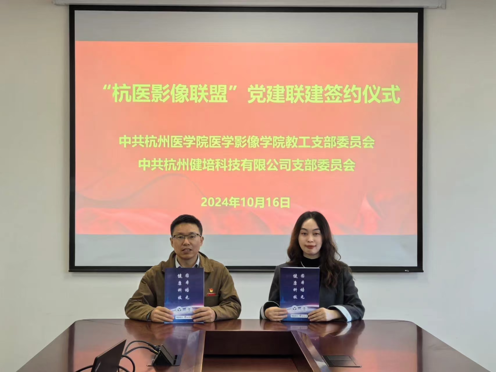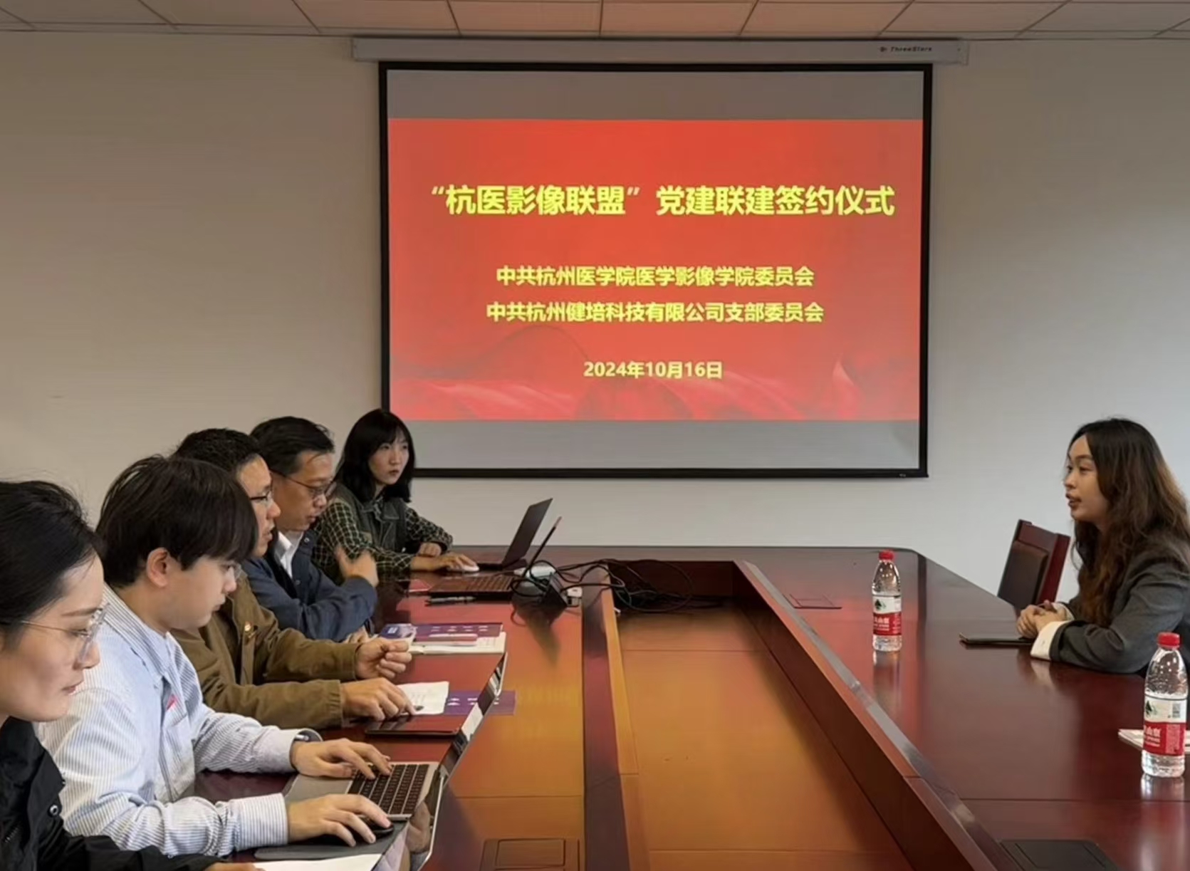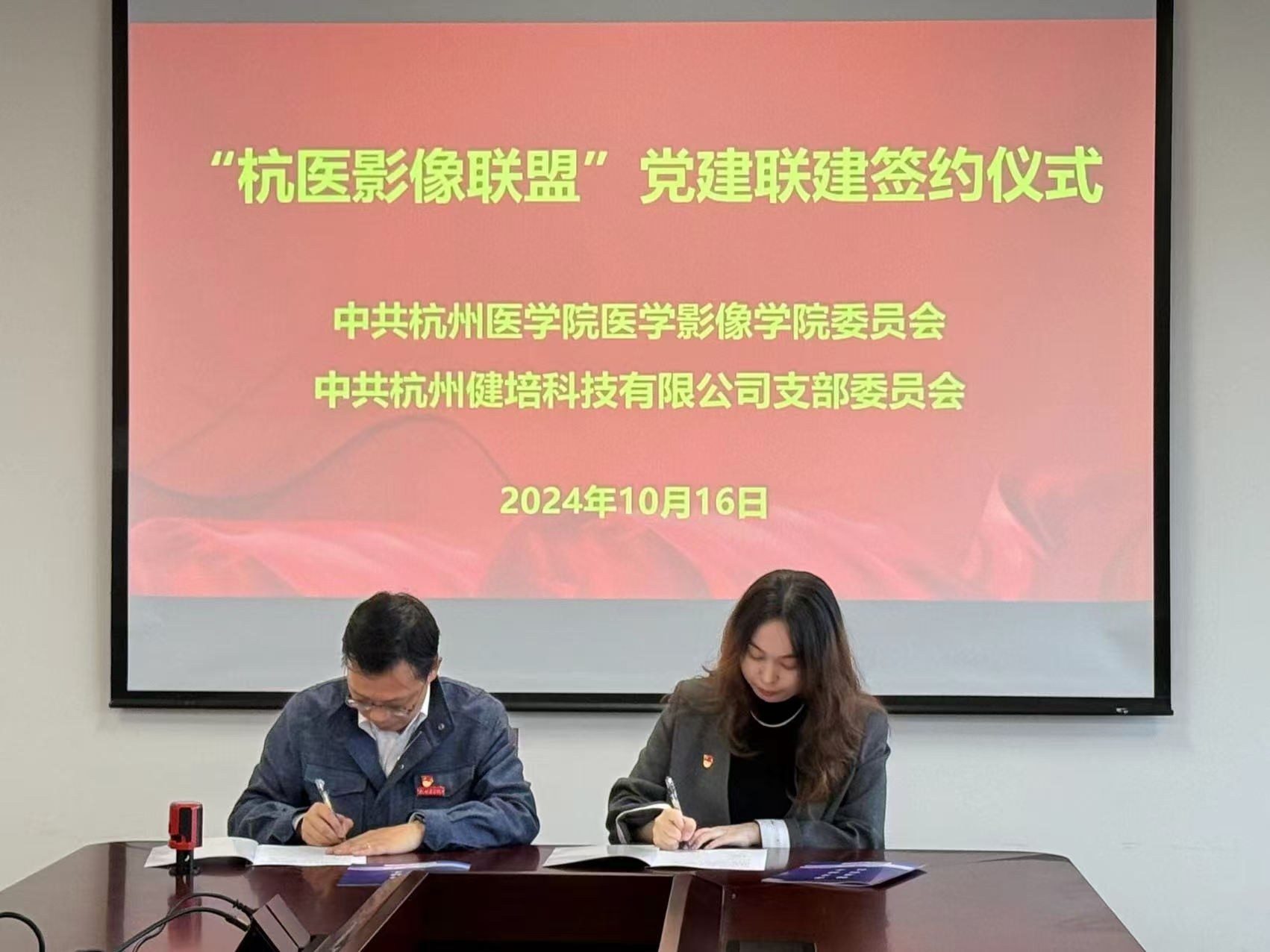為深入貫徹落實(shí)黨的二十大精神、貫徹習(xí)近平新時(shí)代中國特色社會主義思想,進(jìn)一步探索創(chuàng)新黨建工作,全面開展基層黨組織結(jié)對共建活動,著力構(gòu)建基層黨建工作新格局,實(shí)現(xiàn)以聯(lián)建促黨建,以黨建促發(fā)展,推動黨建與業(yè)務(wù)發(fā)展同頻共振。10月16日,中共杭州醫(yī)學(xué)院醫(yī)學(xué)影像學(xué)院委員會與中共杭州健培科技有限公司支部委員會“杭醫(yī)影像聯(lián)盟”黨建聯(lián)建簽約儀式成功舉行。杭州醫(yī)學(xué)院醫(yī)學(xué)影像學(xué)院副院長王大江;杭州醫(yī)學(xué)院醫(yī)學(xué)影像學(xué)院教工黨支部書記范一峰;健培科技黨支部書記謝金波等人員參加簽約儀式。