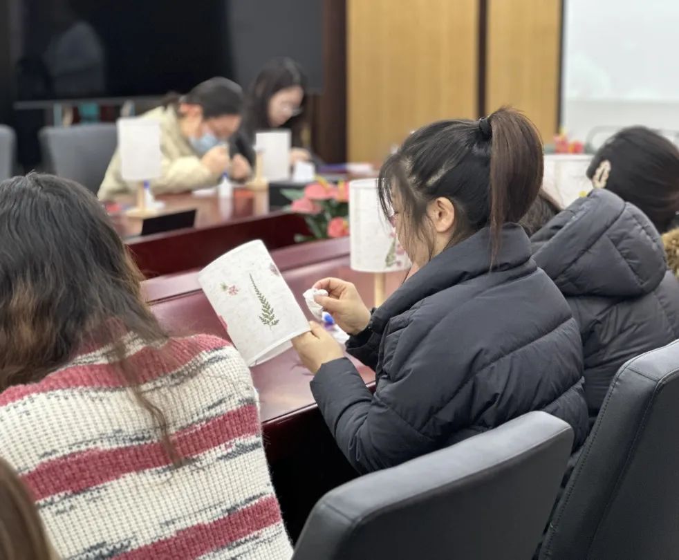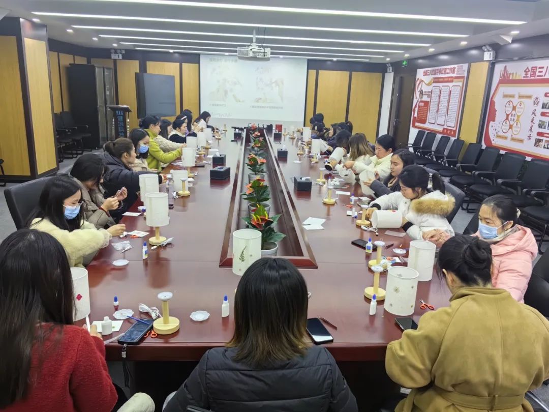 3月7日上午,女職工們紛紛動手實踐。大家充分發(fā)揮自己的創(chuàng)造力和想象力,在燈臺方寸之間,將原本零散的花材精心組合,變成了一件件獨具匠心的花藝燈臺作品。