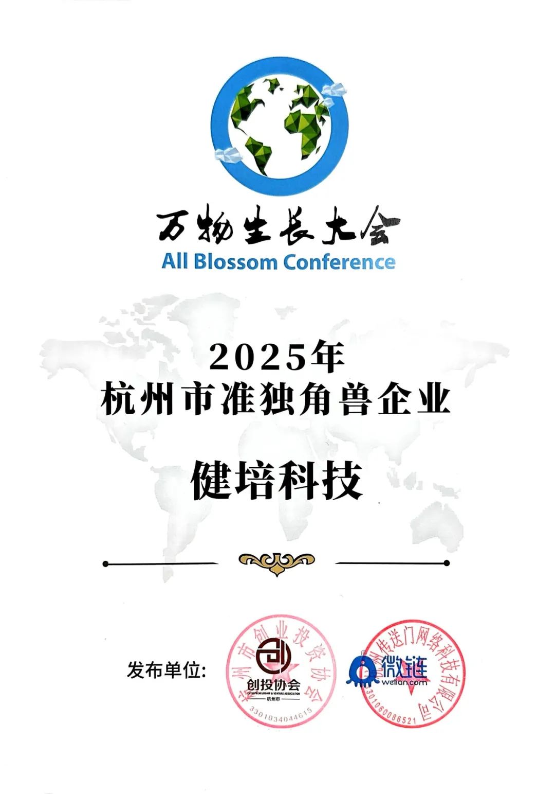 會上,杭州市創(chuàng)業(yè)投資協(xié)會、微鏈和杭州銀行聯(lián)合發(fā)布《2025杭州獨角獸與準(zhǔn)獨角獸企業(yè)榜單》 經(jīng)過多方專家評選,健培科技再次脫穎而出,再次榮登“2025杭州準(zhǔn)獨角獸企業(yè)”榜單。