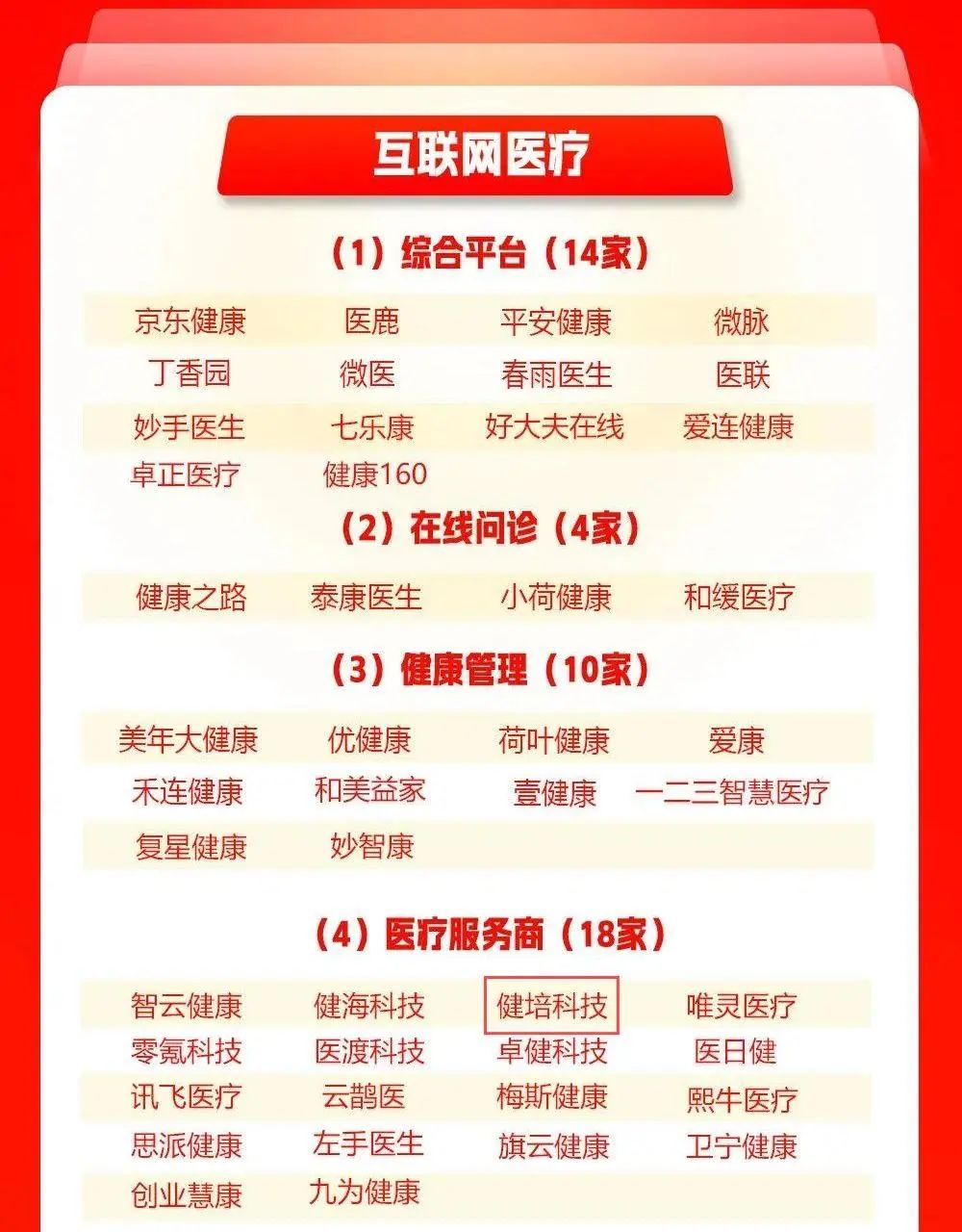 4月24日,我國“一帶一路”TOP10影響力社會智庫網(wǎng)經(jīng)社電子商務(wù)研究中心發(fā)布2024年度的《2024年中國數(shù)字健康“百強(qiáng)榜”》,上榜的有丁香園、微醫(yī)、美年大健康等,其中互聯(lián)網(wǎng)醫(yī)療服務(wù)商類上榜的18家企業(yè)中,健培科技再次上榜。
