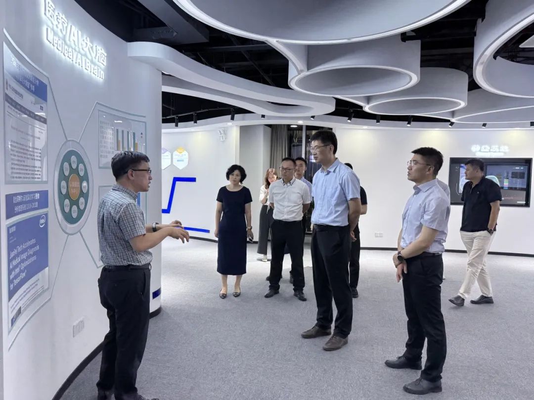 7月15日,上海楊浦區(qū)人民政府副區(qū)長劉晉元、上海市科委前沿交叉處處長陳明、上海楊浦區(qū)科經(jīng)委副主任葉桂芳、信通院上海工創(chuàng)中心副總經(jīng)理方金武、信通院上海工創(chuàng)中心高級咨詢顧問王梅卿、上海楊浦科創(chuàng)集團副書記朱鴿飛、上海楊浦區(qū)科經(jīng)委副科長吳強、上海楊浦科技投資發(fā)展有限公司總經(jīng)理施展等領(lǐng)導一行蒞臨健培科技考察指導工作。調(diào)研AI+醫(yī)療健康科技融合應用情況,并深入了解數(shù)字醫(yī)療科技賦能基層醫(yī)療機構(gòu)以及公共衛(wèi)生事業(yè)情況。