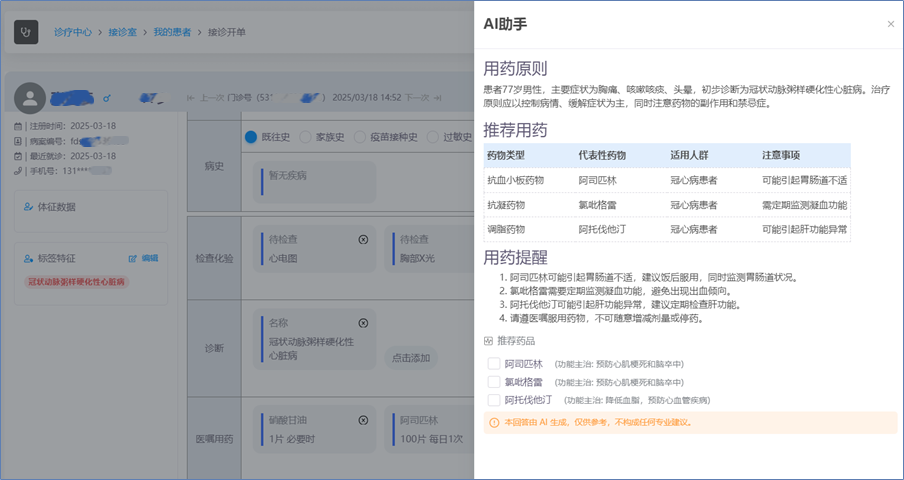 啄醫(yī)生不僅能可以幫助醫(yī)生深度整合患者的電子病歷、檢驗(yàn)報(bào)告、藥物過(guò)敏史、基因檢測(cè)等數(shù)據(jù),結(jié)合最新臨床指南和藥物知識(shí)庫(kù),為醫(yī)生生成個(gè)性化的用藥方案建議。還可以為患者提供離院后的持續(xù)服務(wù),特別是在慢性病多藥聯(lián)用場(chǎng)景中,可智能識(shí)別潛在藥物相互作用風(fēng)險(xiǎn),通過(guò)用藥提醒、隨訪提醒、居家檢測(cè)、動(dòng)態(tài)跟蹤等各項(xiàng)服務(wù)為患者推薦用藥方案。構(gòu)建“診前-診中-診后”的閉環(huán)的薦藥服務(wù)生態(tài)體系,讓精準(zhǔn)用藥貫穿管理全流程,為健康保駕護(hù)航。