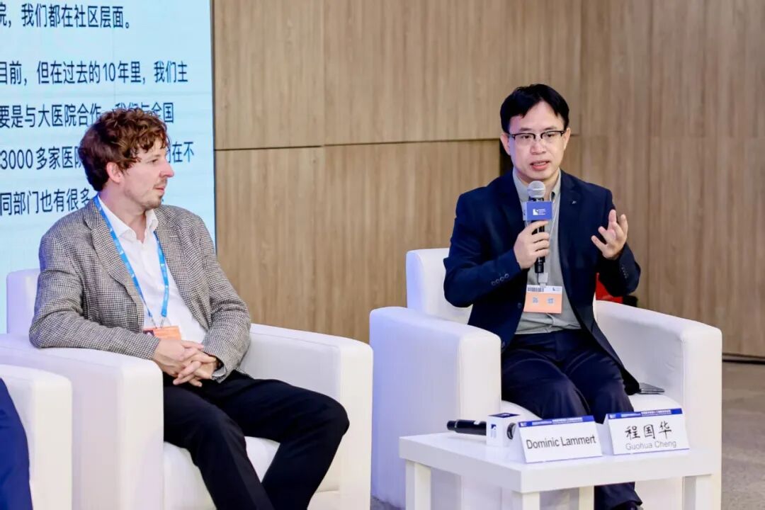 論壇第二部分聚焦“醫(yī)學(xué)人工智能臨床轉(zhuǎn)化”,由伯爾尼大學(xué)人工智能與轉(zhuǎn)化診療實(shí)驗(yàn)室主任施匡宇與同濟(jì)醫(yī)院外事辦公室主任吳珩共同主持。